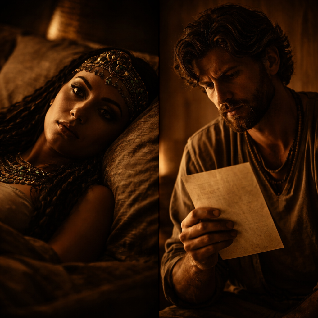 Zelicah no soportaba la condición oculta de lo que vivían. Una noche, mientras el palacio permanecía en silencio, le pidió a José que alterara el orden de las cosas de un modo irreversible. No empleó rodeos. Le habló con una claridad que dejaba pocas opciones: había que asesinar al Faraón. Él la escuchó sin interrumpirla, y cuando respondió lo hizo con la misma serenidad que había mostrado al aprender: dijo que no.